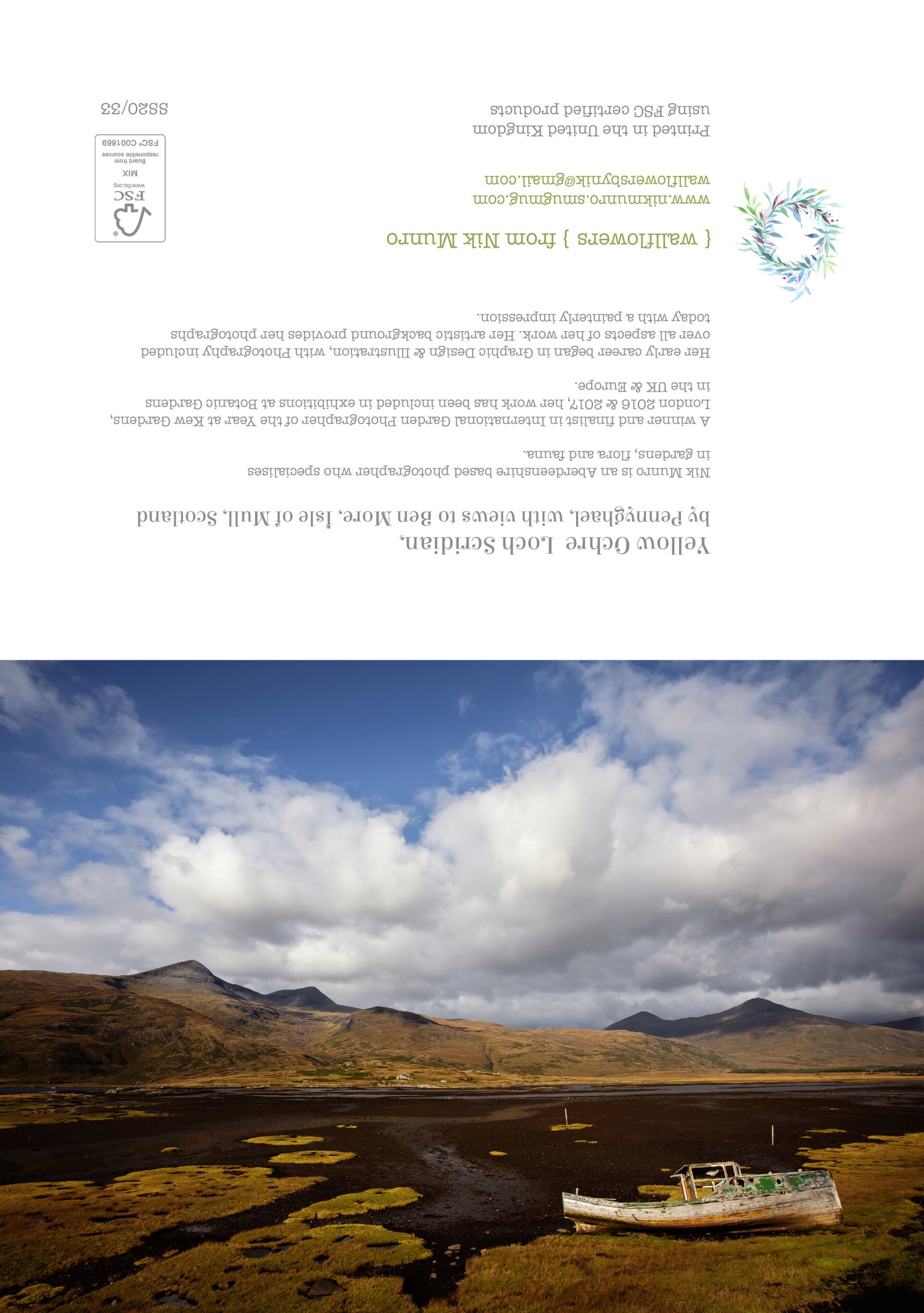 Photographic landscapes from over Scotland. Printed on good quality smooth white board, packed in a recycled brown envelope.