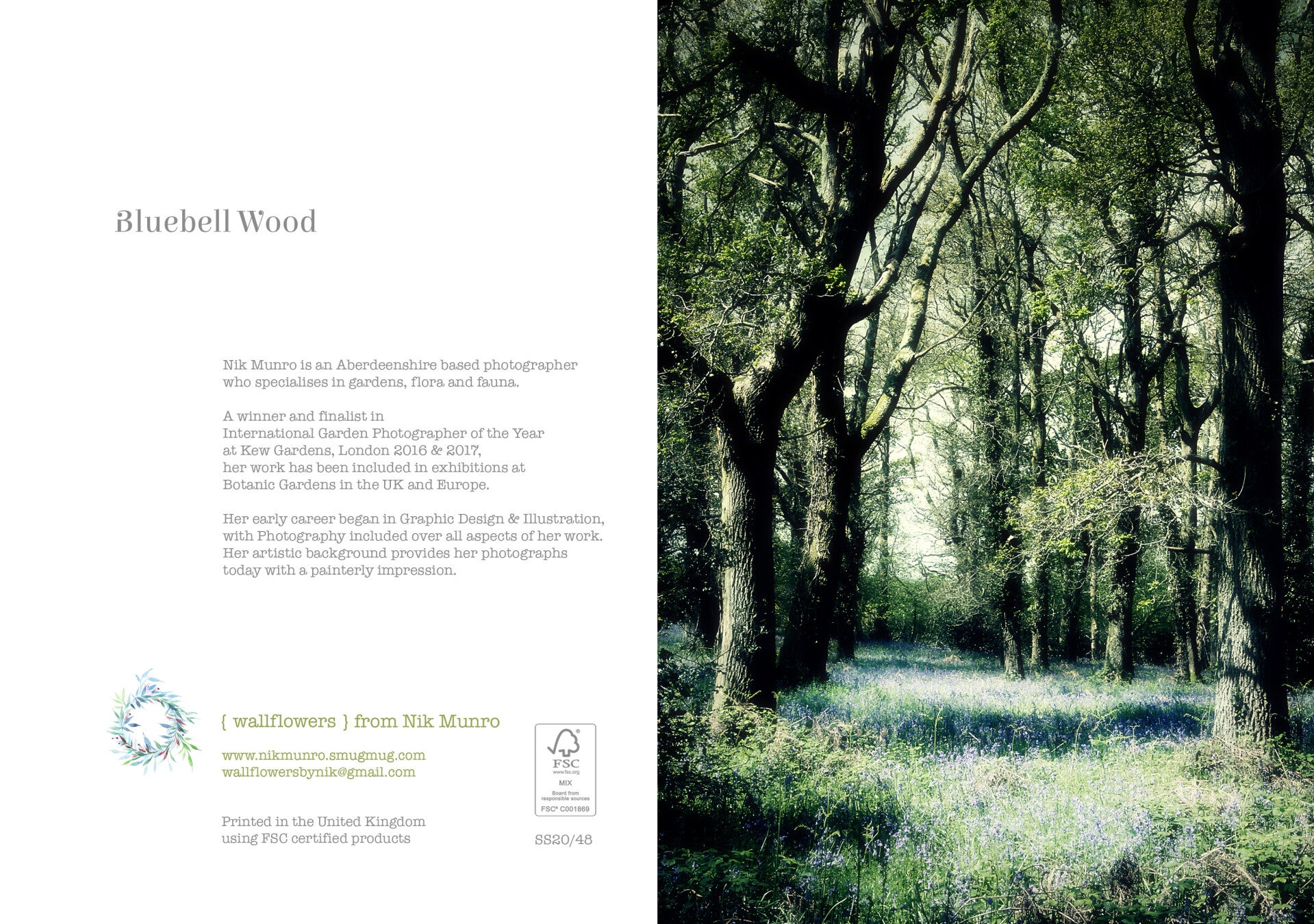 Stylised photos of some favourite flowers, trees and plants. Printed on watercolour-style board to add to the soft impression of the image. With a brown recycled envelope.