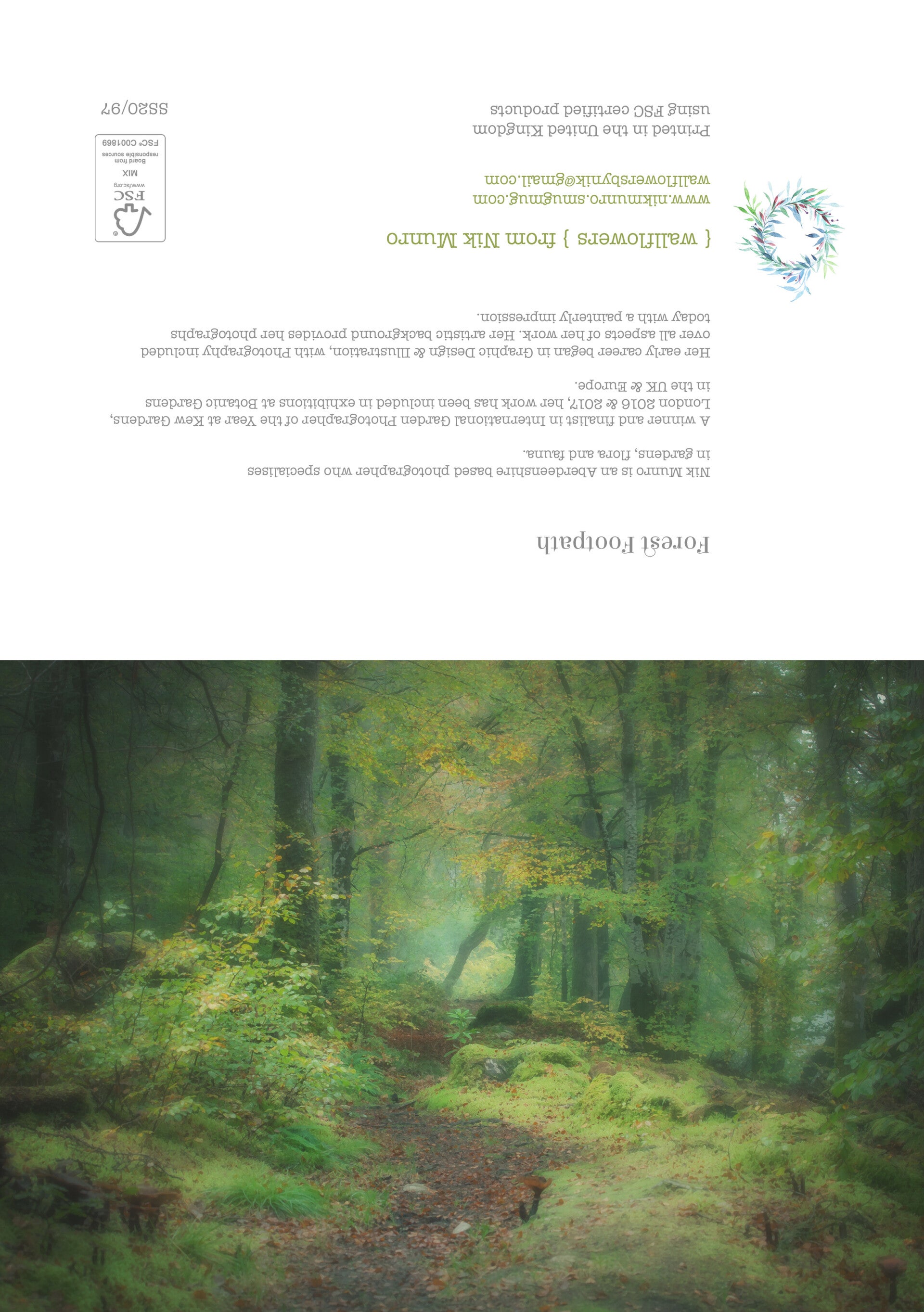 Stylised photos of some favourite flowers, trees and plants. Printed on watercolour-style board to add to the soft impression of the image. With a brown recycled envelope.