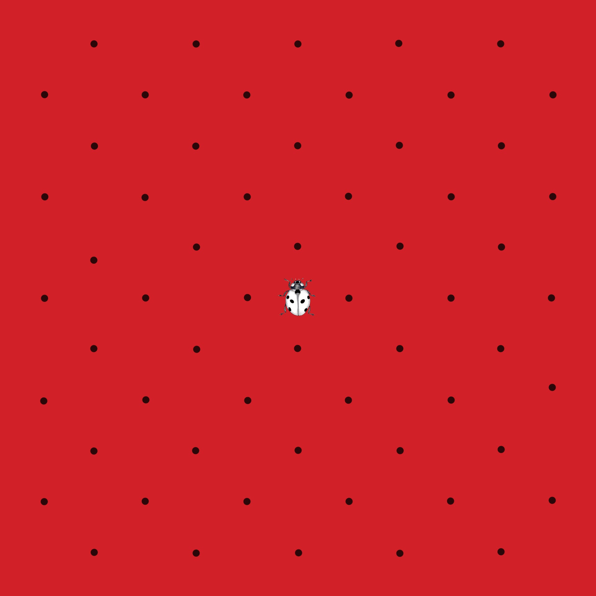 Luxury velvet cushion in red with a ladybird / ladybug illustrated in black and white in the centre and a black dot pattern over the rest of the space. Same on reverse with black piping.